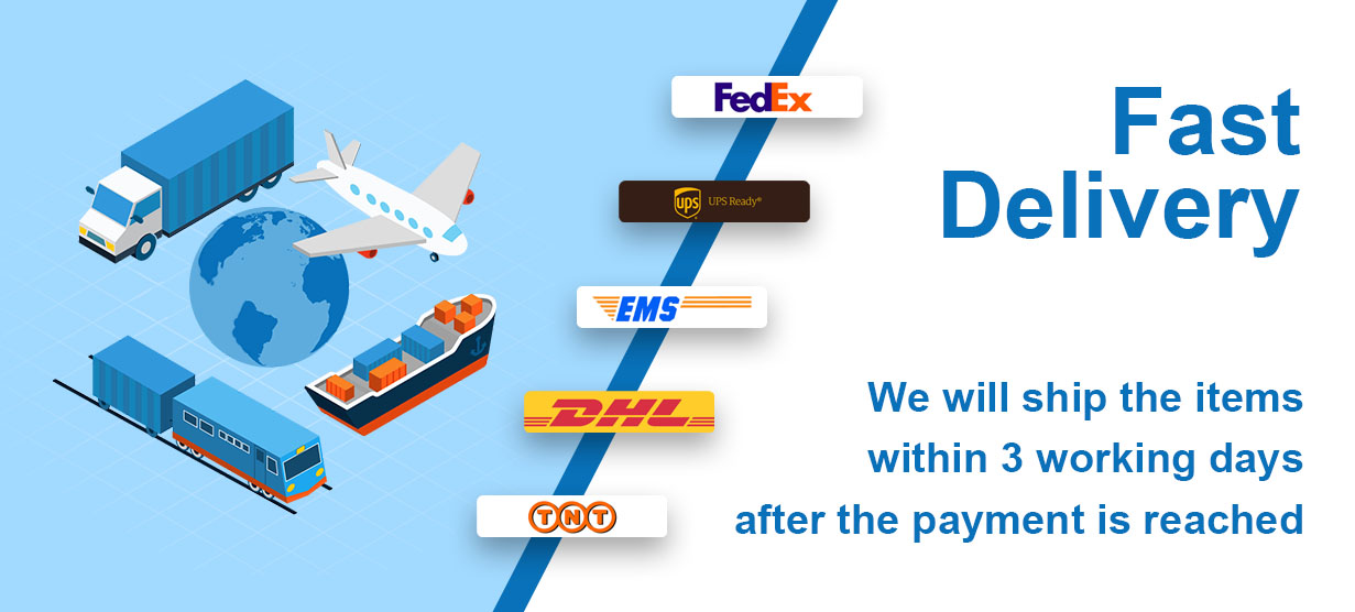 ما با چندین شرکت اکسپرس همکاری میکنیم: DHL TNT UPS EMS Fedex برای ارسال کالا به سراسر جهان